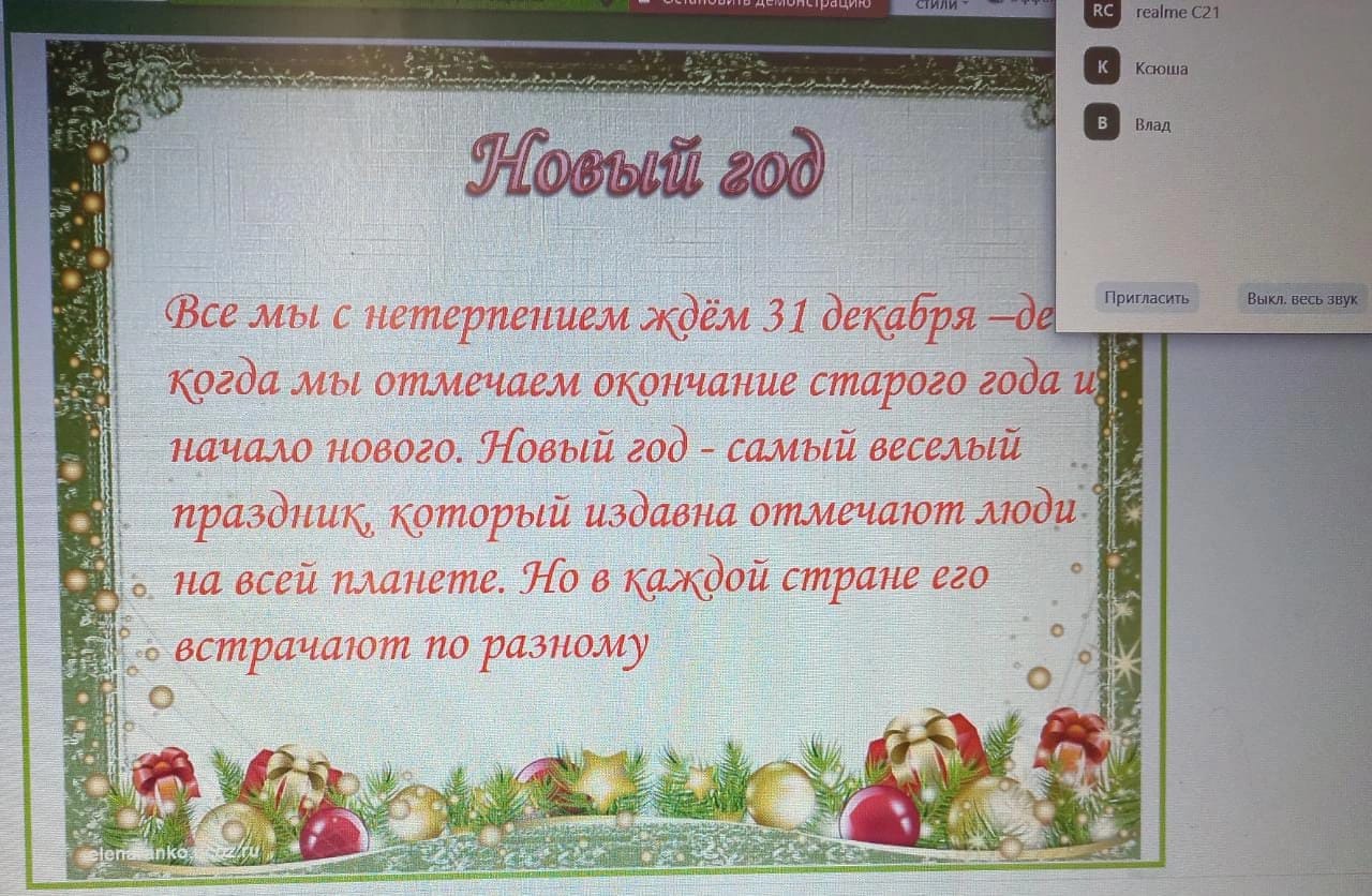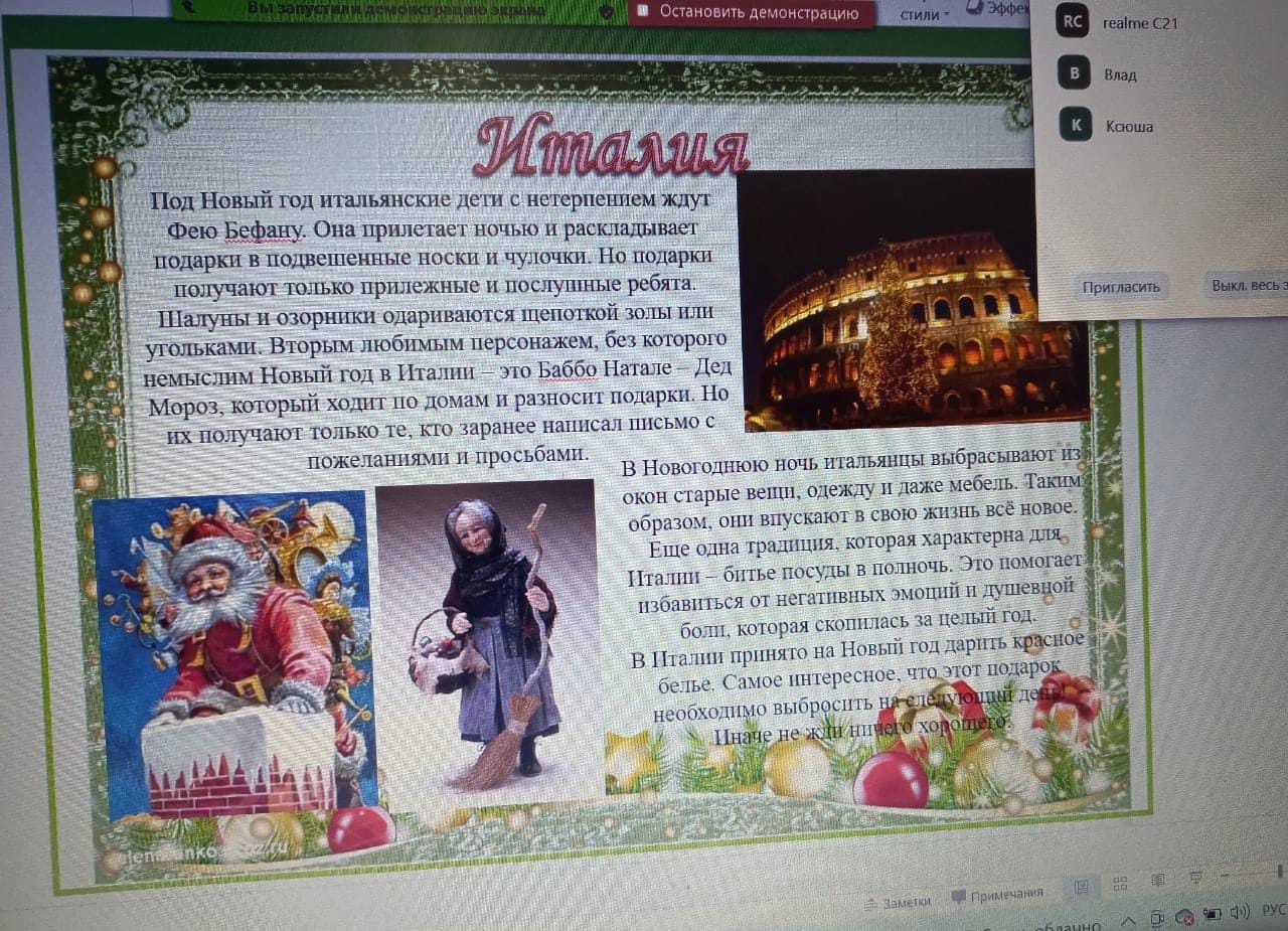 Каникулы продолжаются и с 5, 6 классами проведены онлайн мероприятия на тему:"Новый год в различных странах"