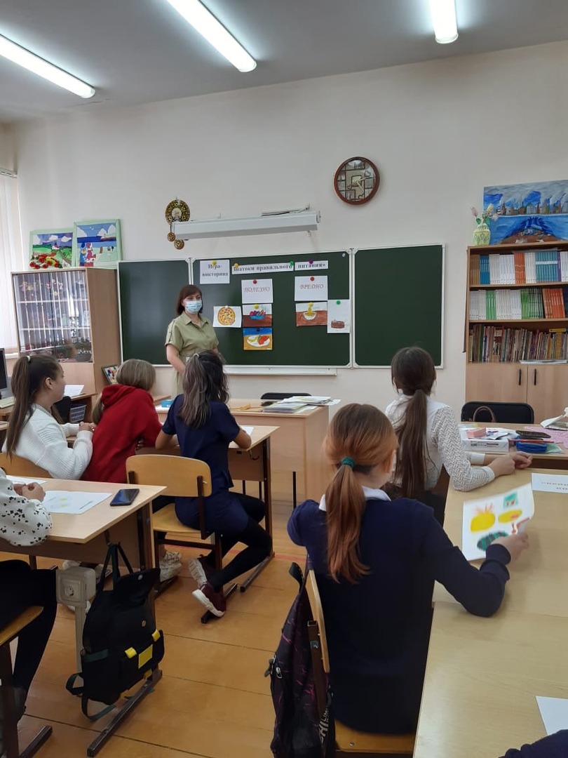 Для девочек 5-6 классов прошла игра-викторина " Знатоки правильного питания. Социальный педагог школы Гусева О. Н. и учитель технологии Жердева Е. Ю. совершили путешествие по полезным и не полезным продуктам питания.