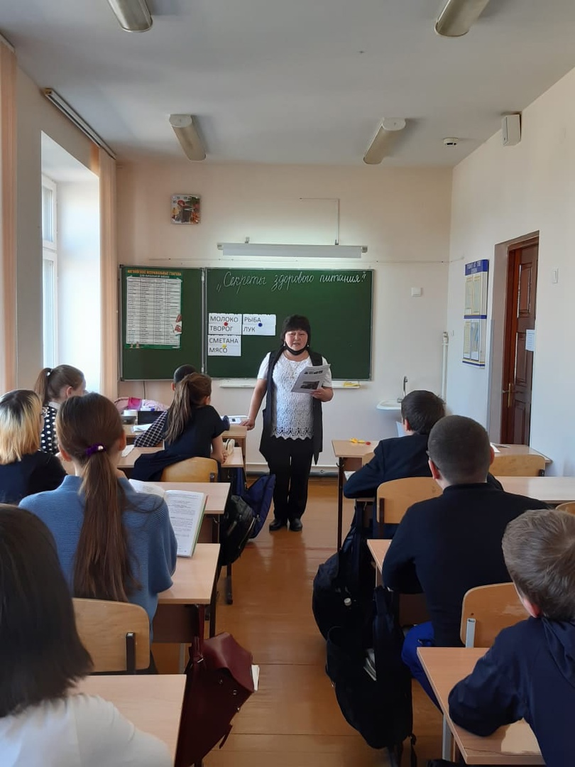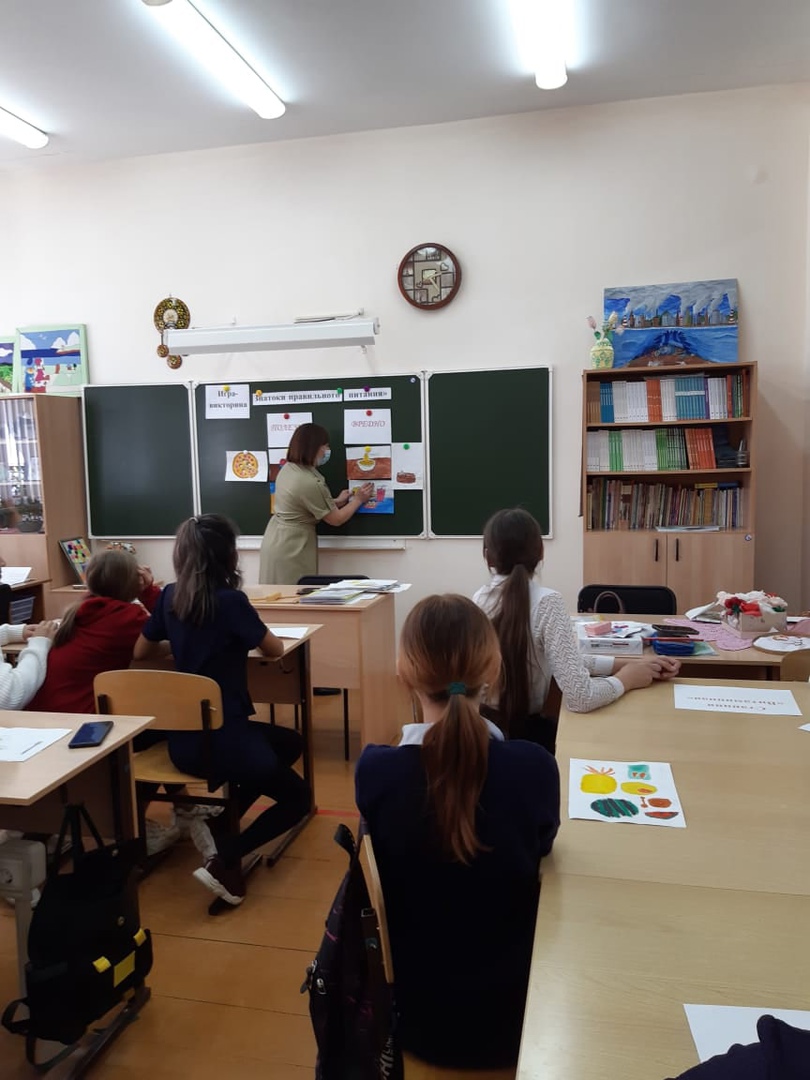 Сегодня, во 2б классе, медсестра школы провела урок-экскурсию по здоровому питанию. Ребята путешествовали по станциям, отгадывали загадки, отвечали на вопросы медицинского работника.