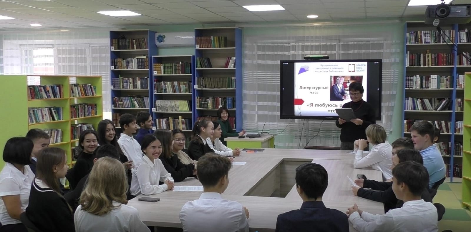 Обучающиеся 8б класса с учителем русского языка и литературы Халитовой А.С. приняли участие в мероприятии, посвященном Юбилею Белова В.И., которое прошло в Центральной районной библиотеке. Ребята узнали много устаревших слов, которыми богата лексика произведений Василия Ивановича. Прочли по ролям отрывки из рассказов, ответили на вопросы викторины и поиграли в старинную игру "Колечко".