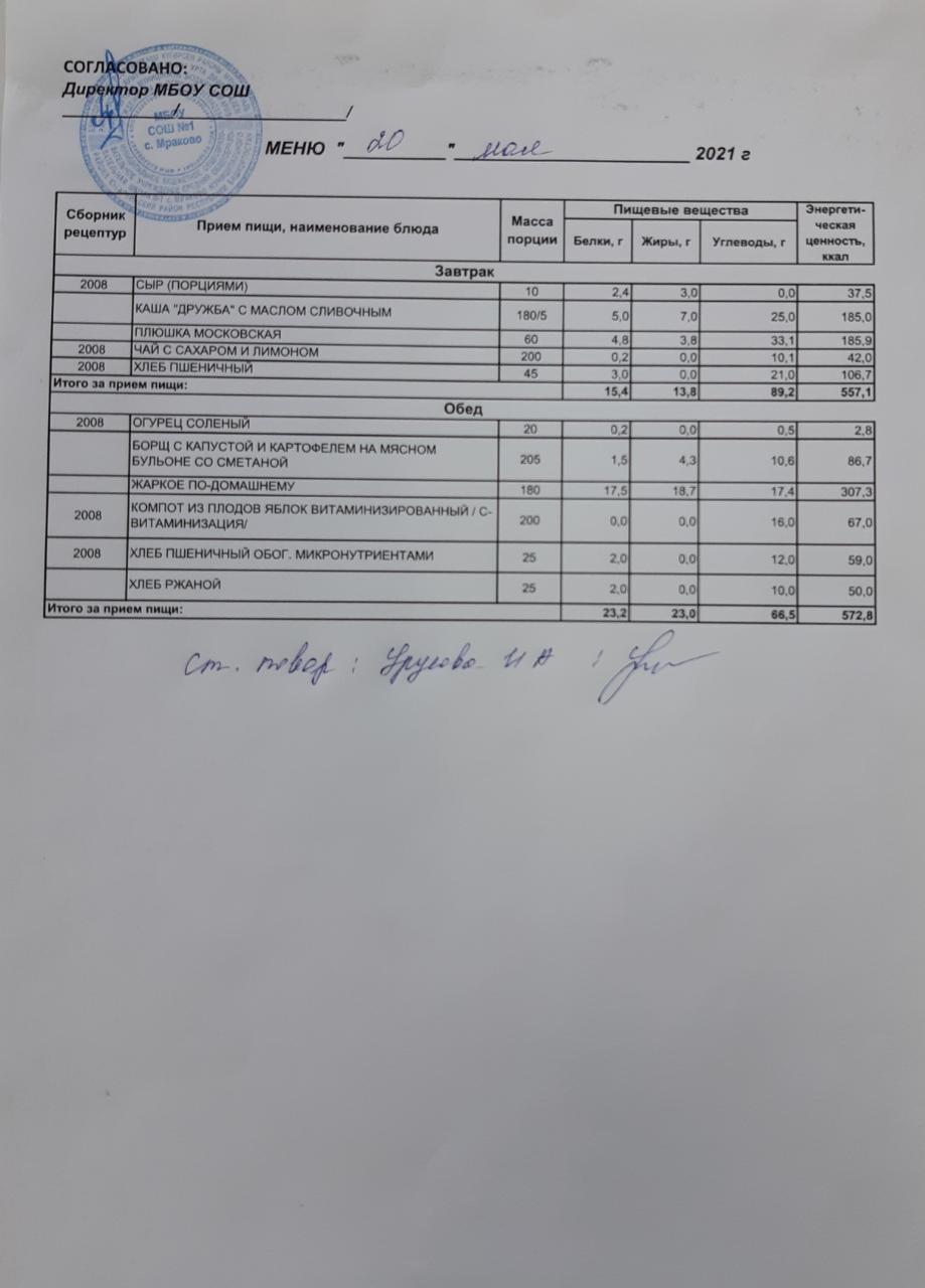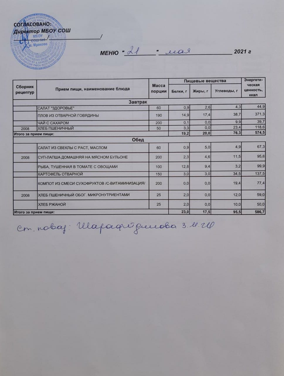 Примерное перспективное меню для учащихся 1-4 кл., 5-11 кл. в МБОУ СОШ № 1 с.Мраково МР Кугарчинский район РБ