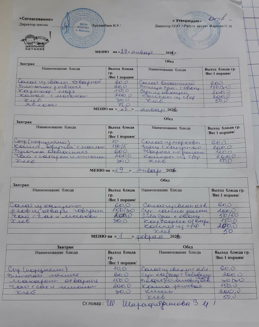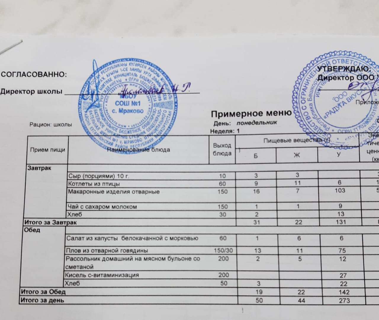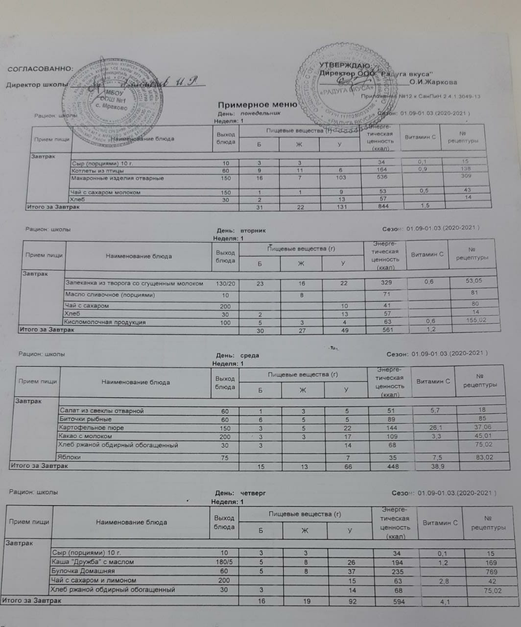 Примерное перспективное меню для учащихся 1-4 кл., 5-11 кл. в МБОУ СОШ № 1 с.Мраково МР Кугарчинский район РБ