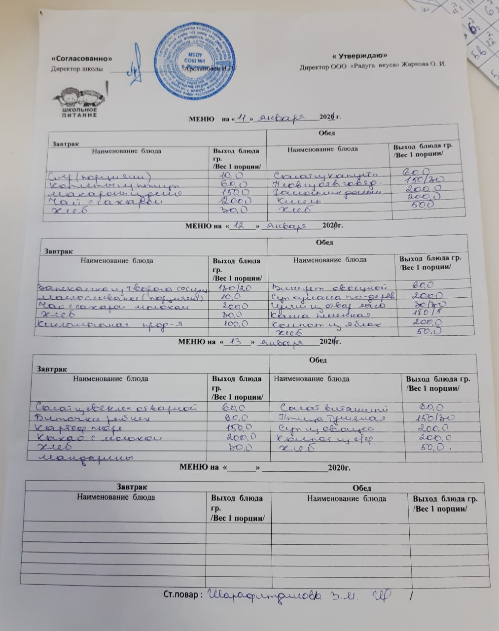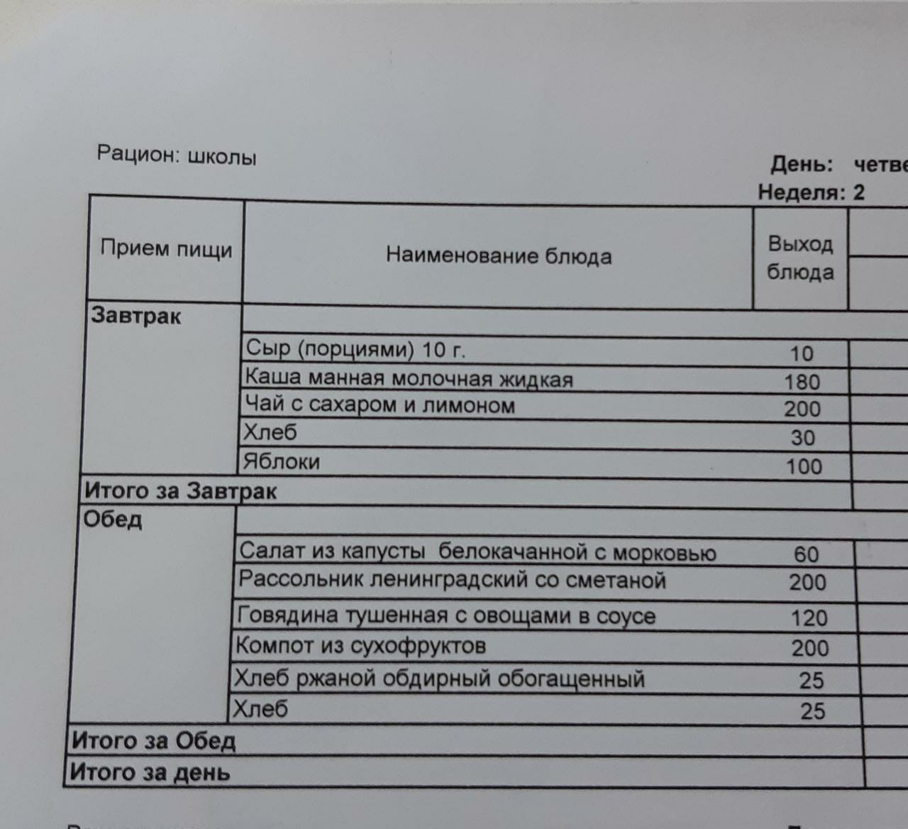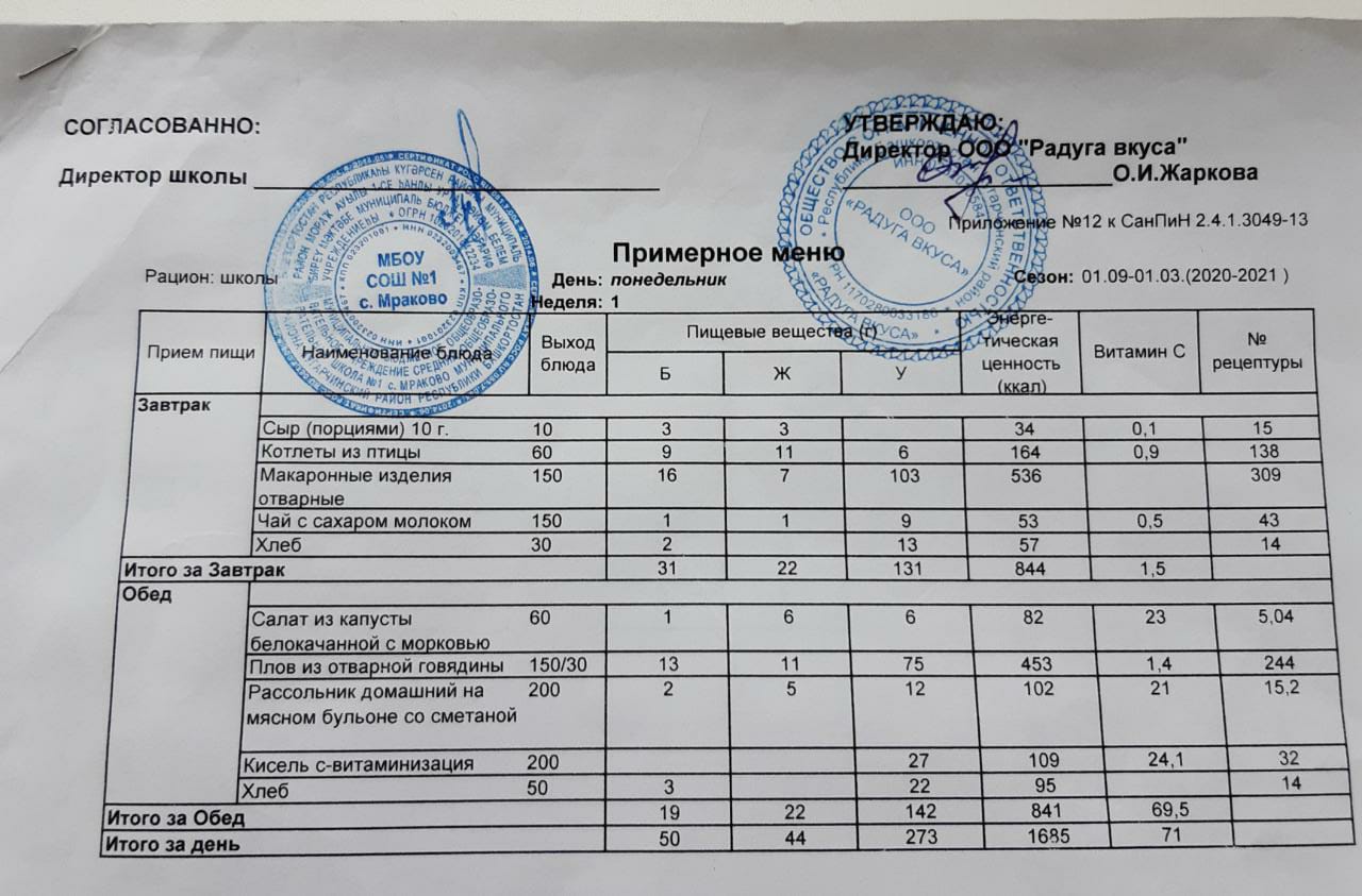 Меню приготавливаемых блюд оздоровительного лагеря с дневным пребыванием. Возрастная категория: от 12 лет и старше Меню от 12 лет и старше