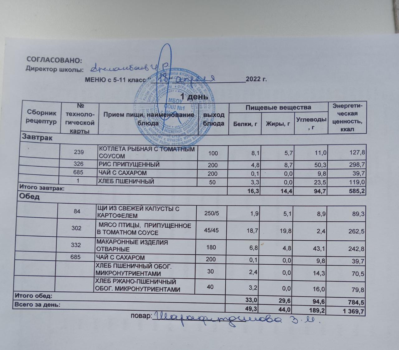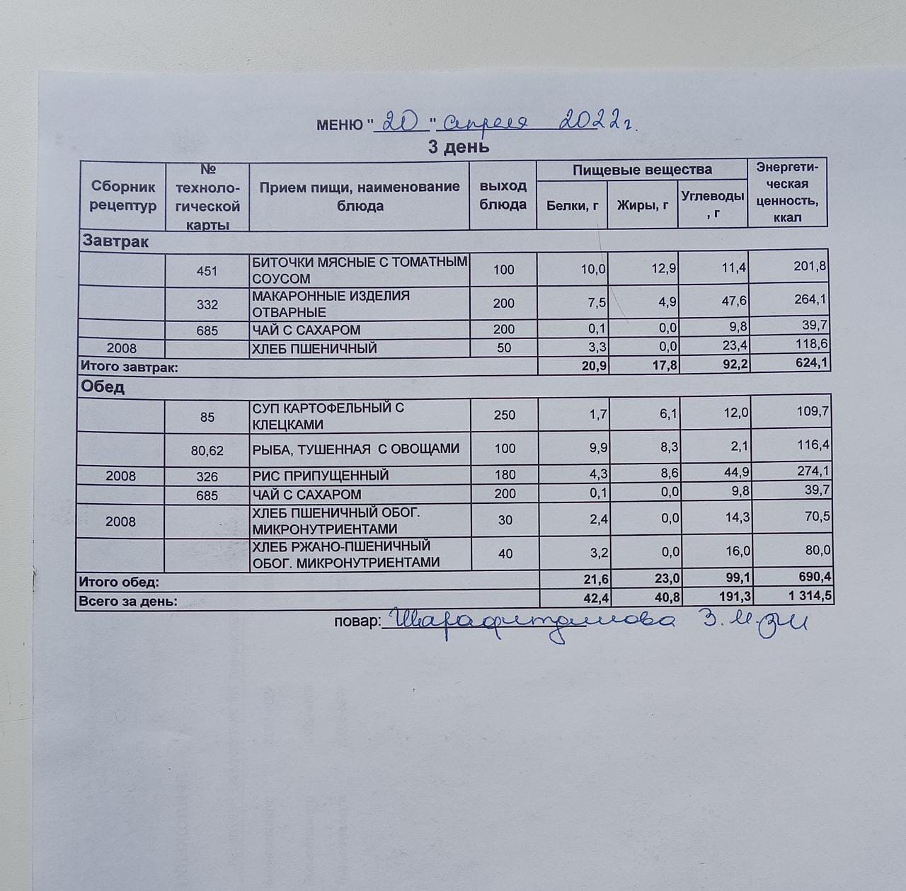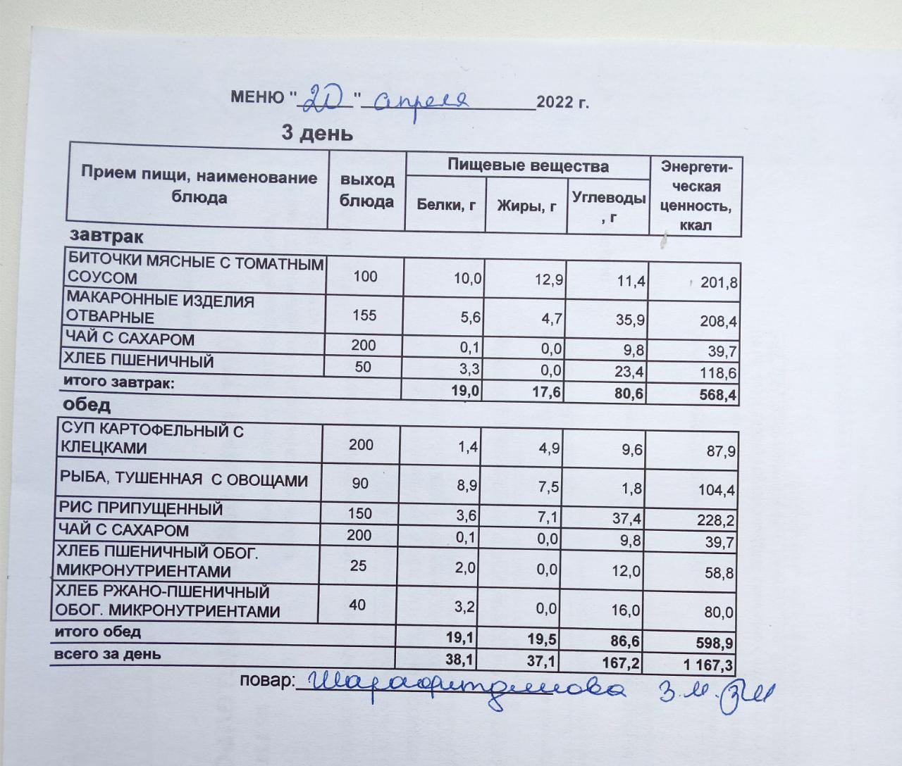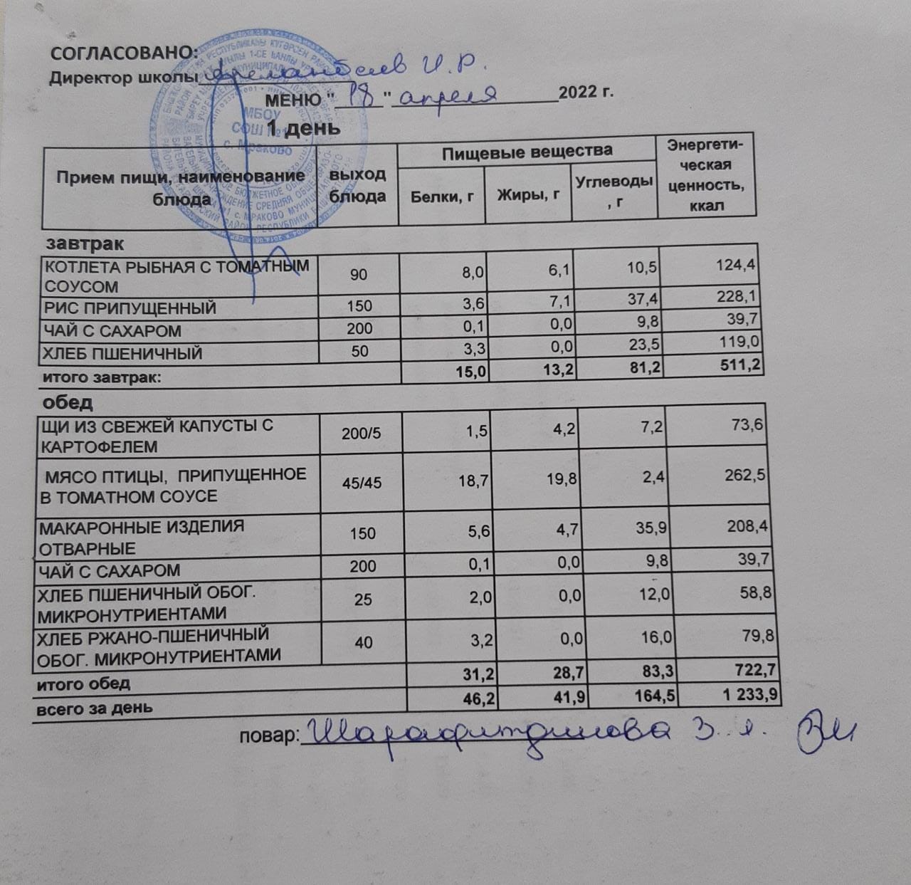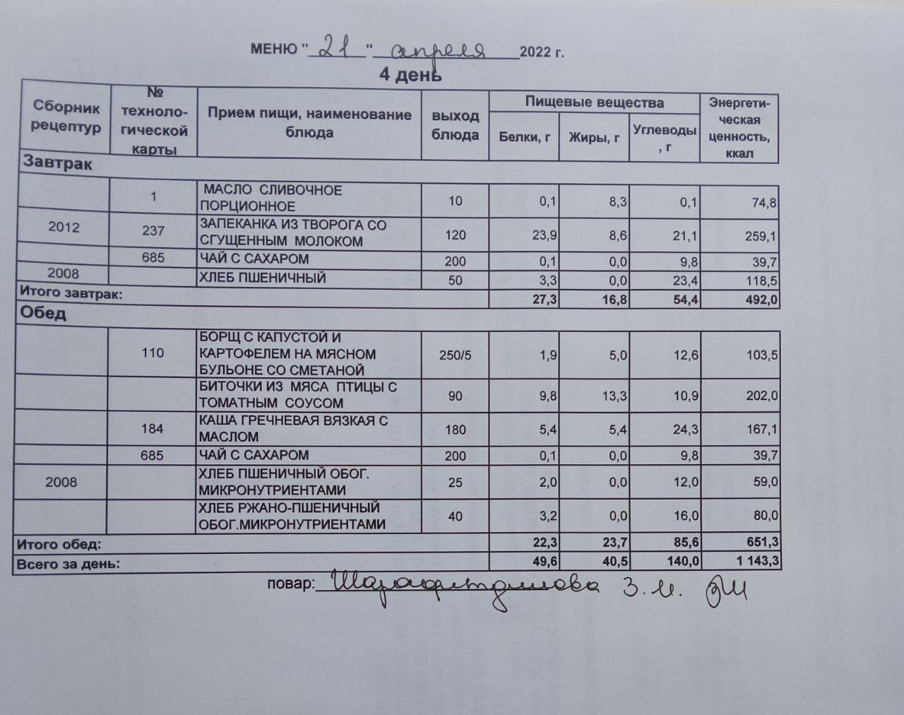 (Меню на 21.04.2022 г. обучающихся главного корпуса)