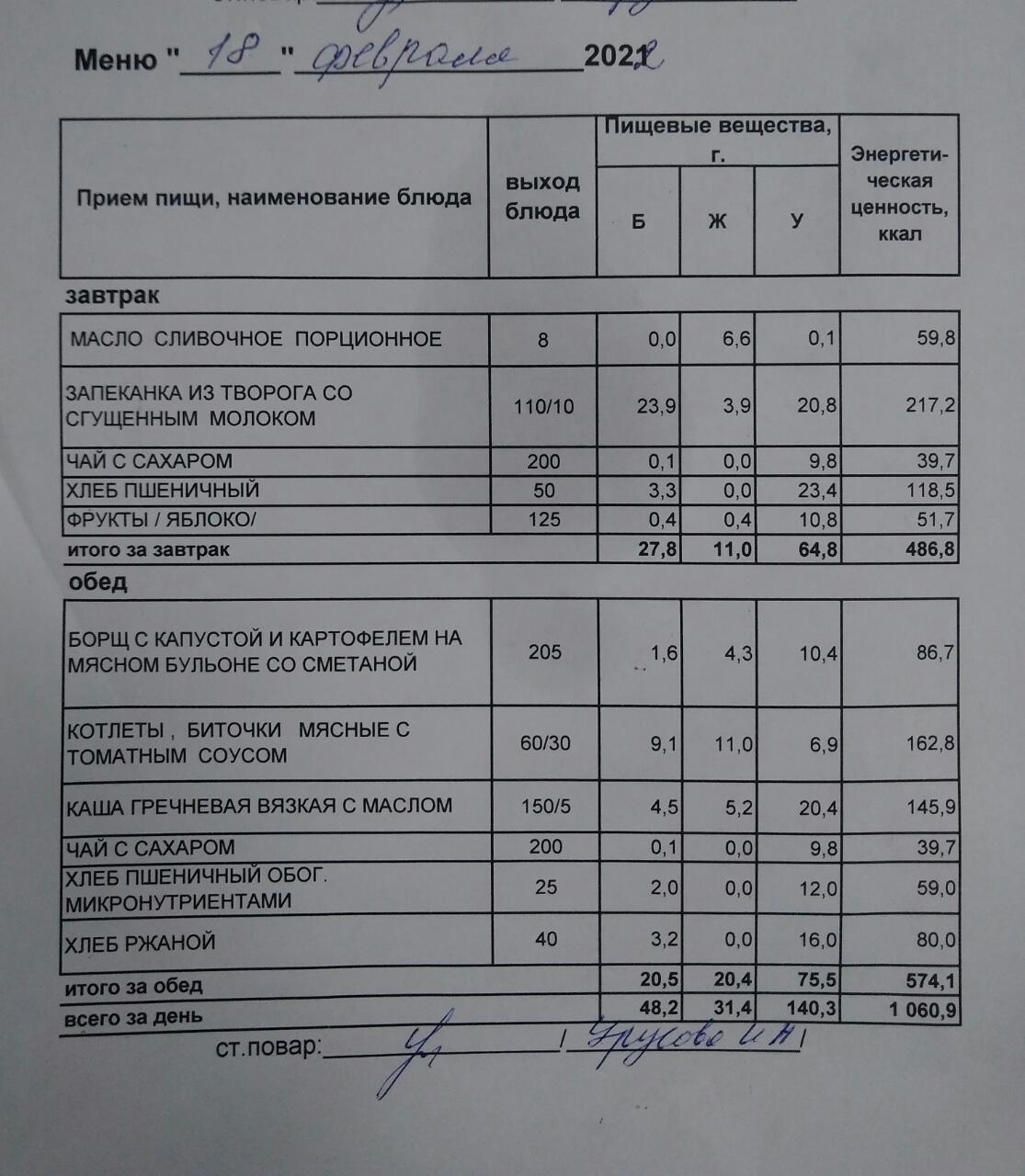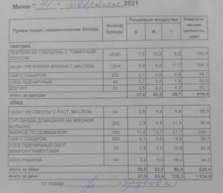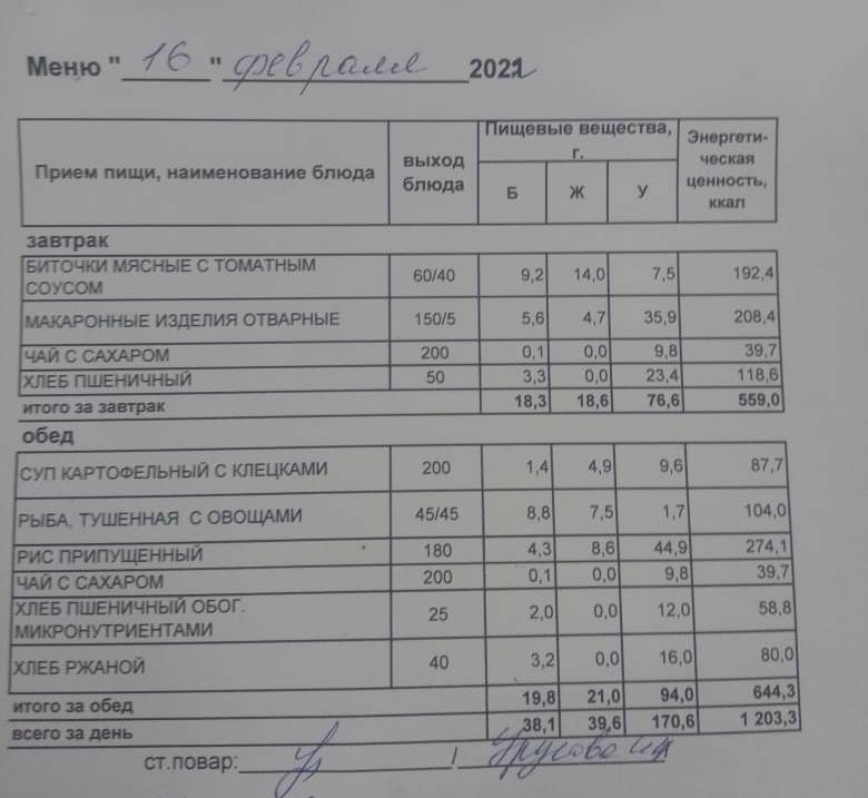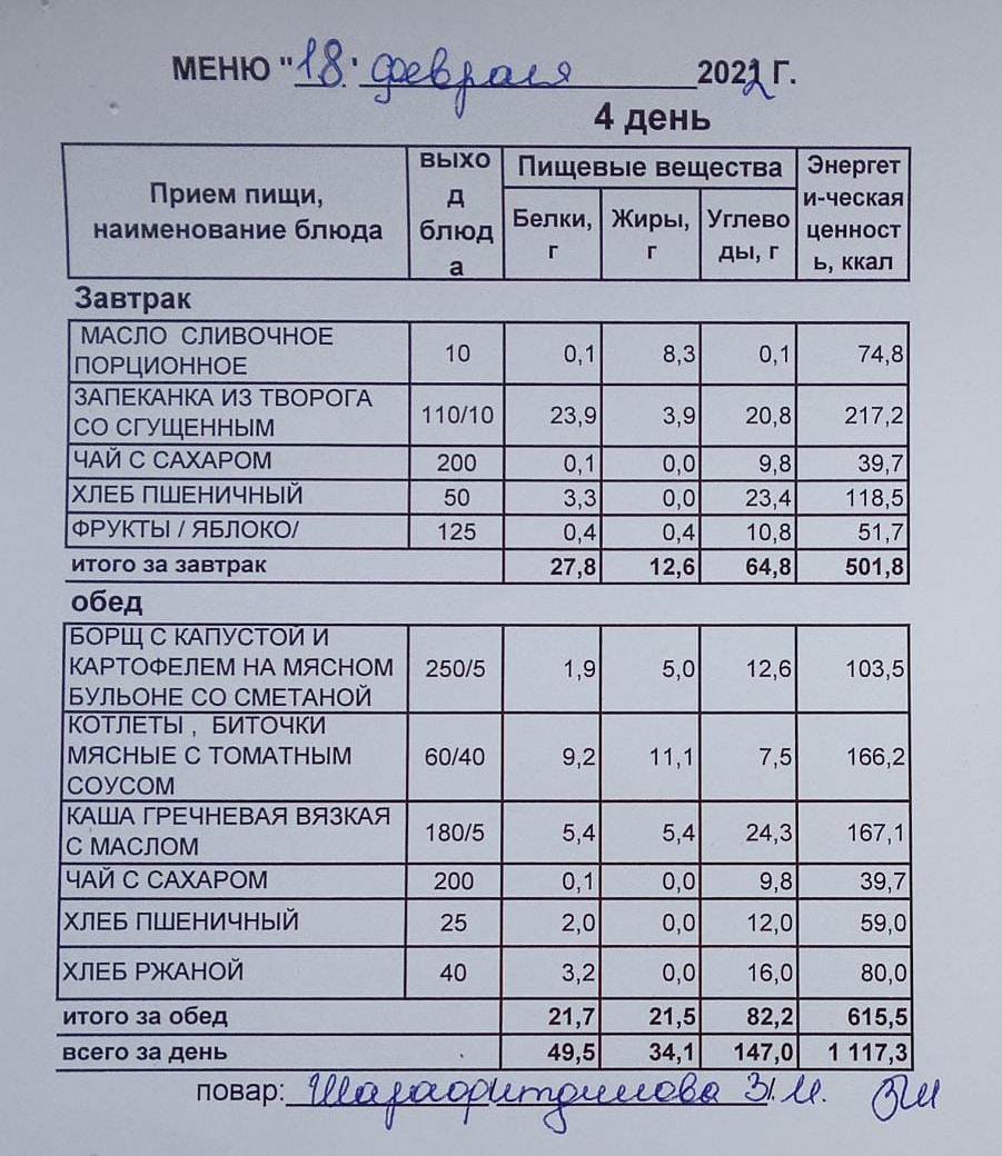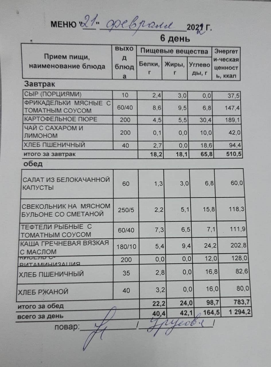 (Меню на 21.02.2022 г.обучающихся главного корпуса)