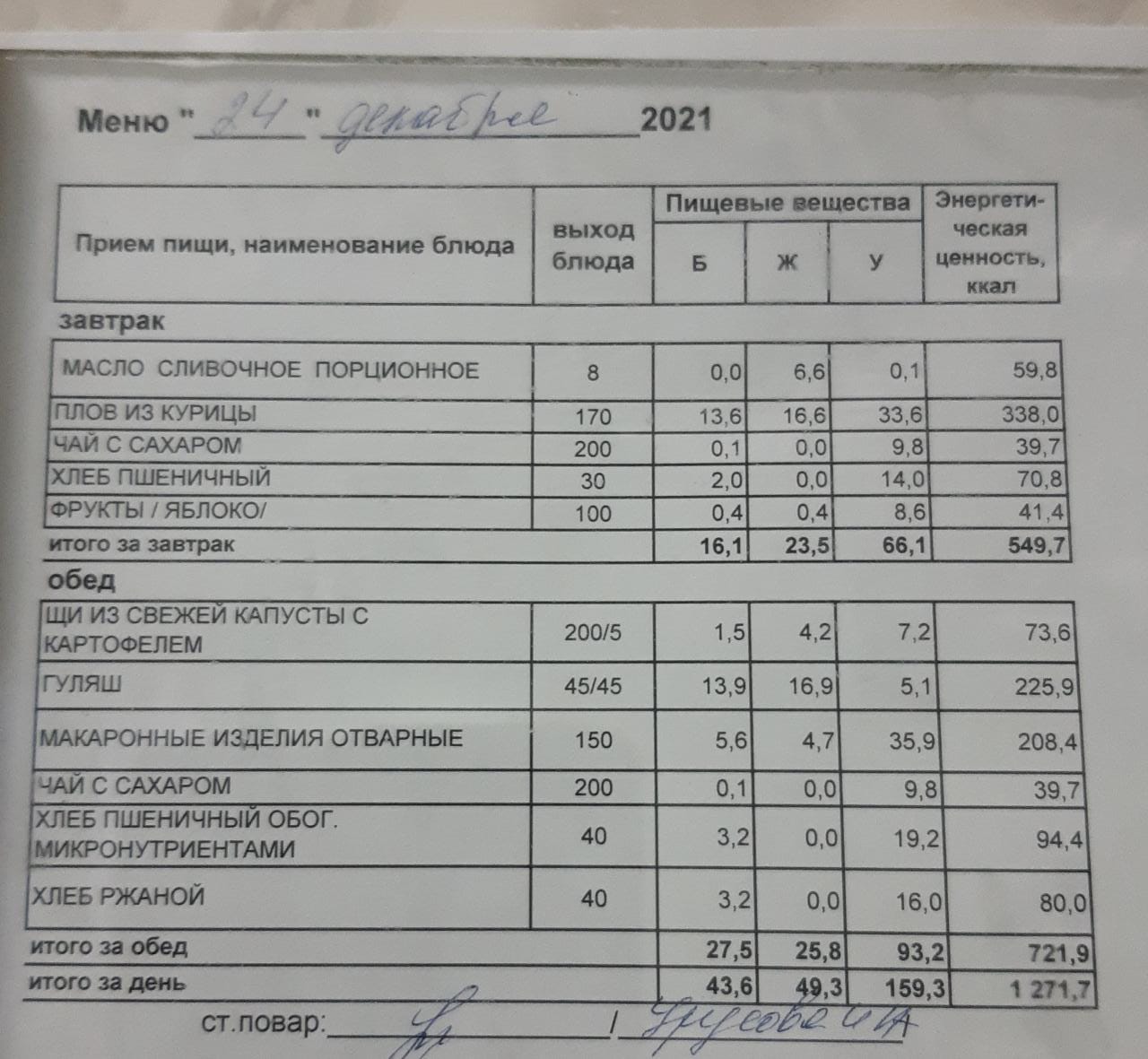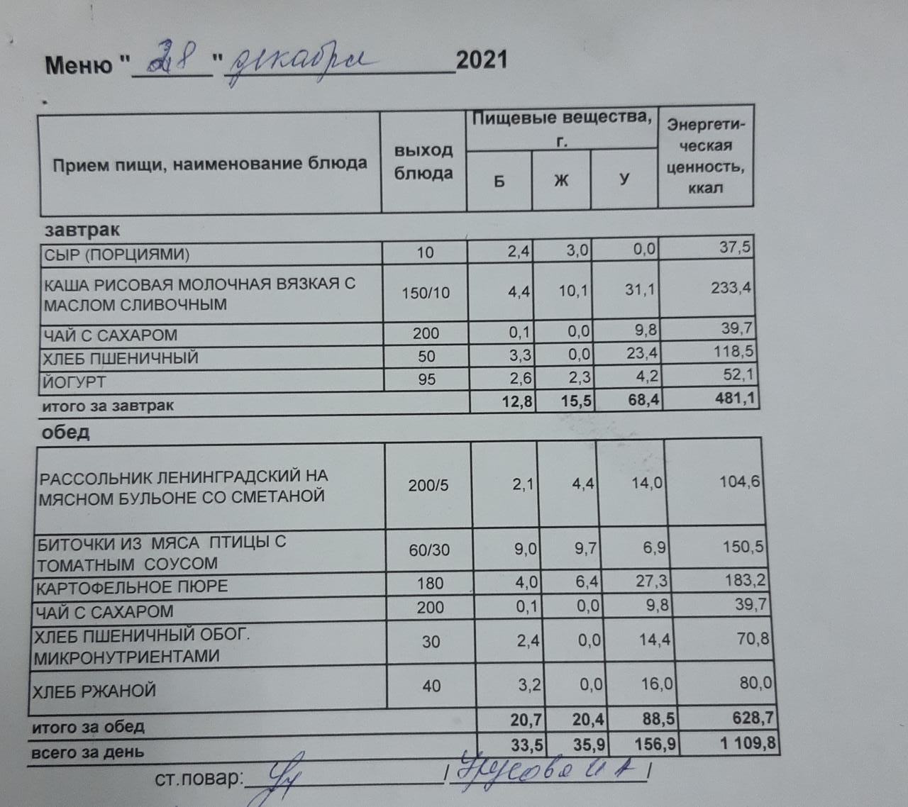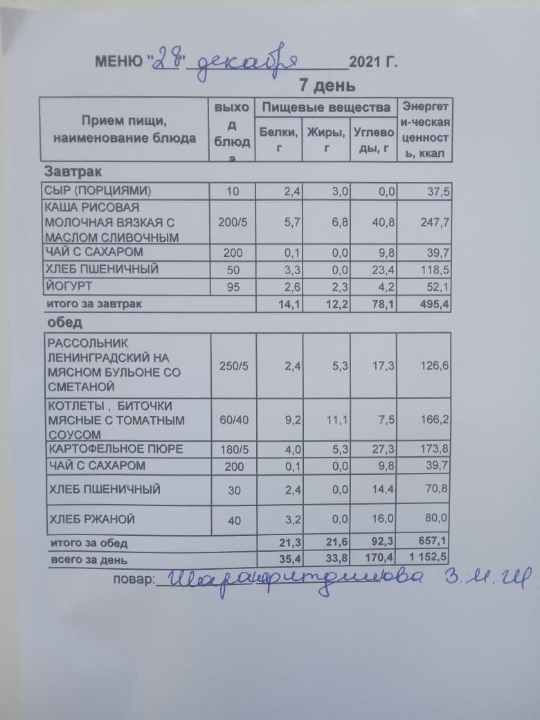 (Меню на 28.12.2021 г. обучающихся главного корпуса)