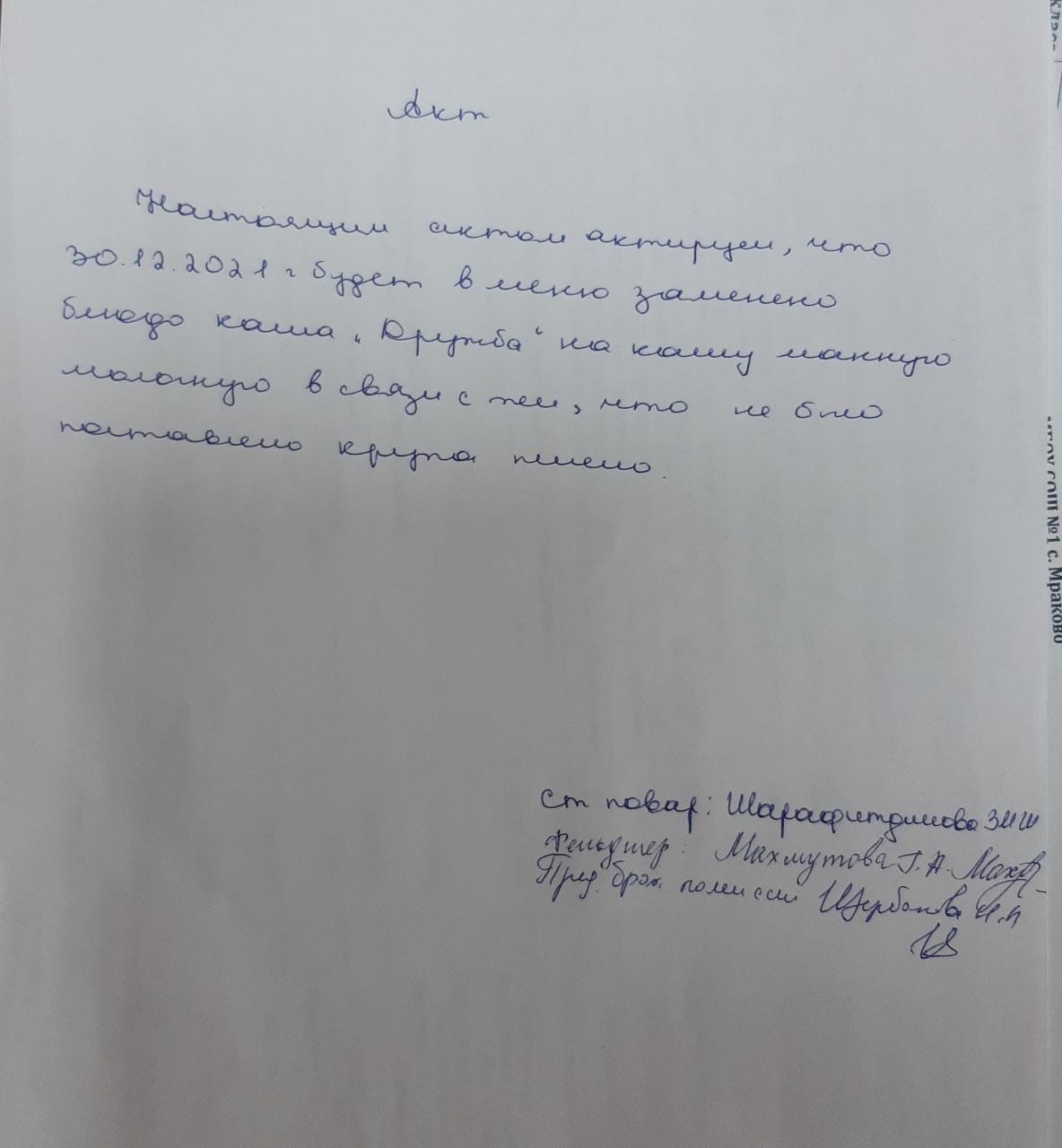 (Акт замены меню на 30.12.2021 г. горячего питания обучающихся главного корпуса )
