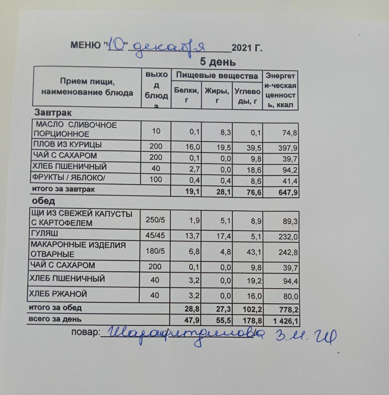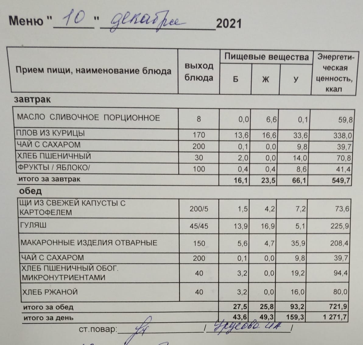 (Меню на 10.12.2021 г. обучающихся главного корпуса)