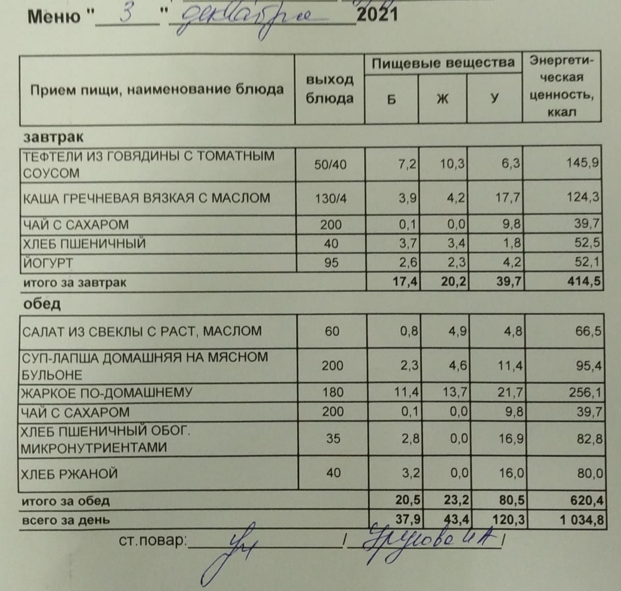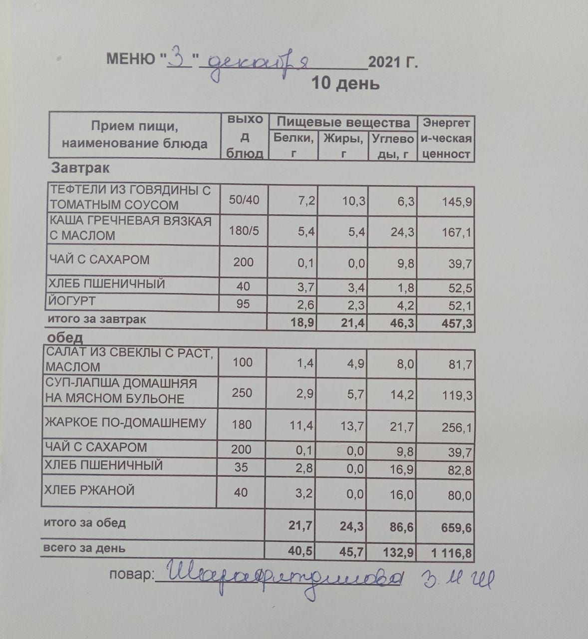 (Меню на 03.12.2021 г. обучающихся главного корпуса)