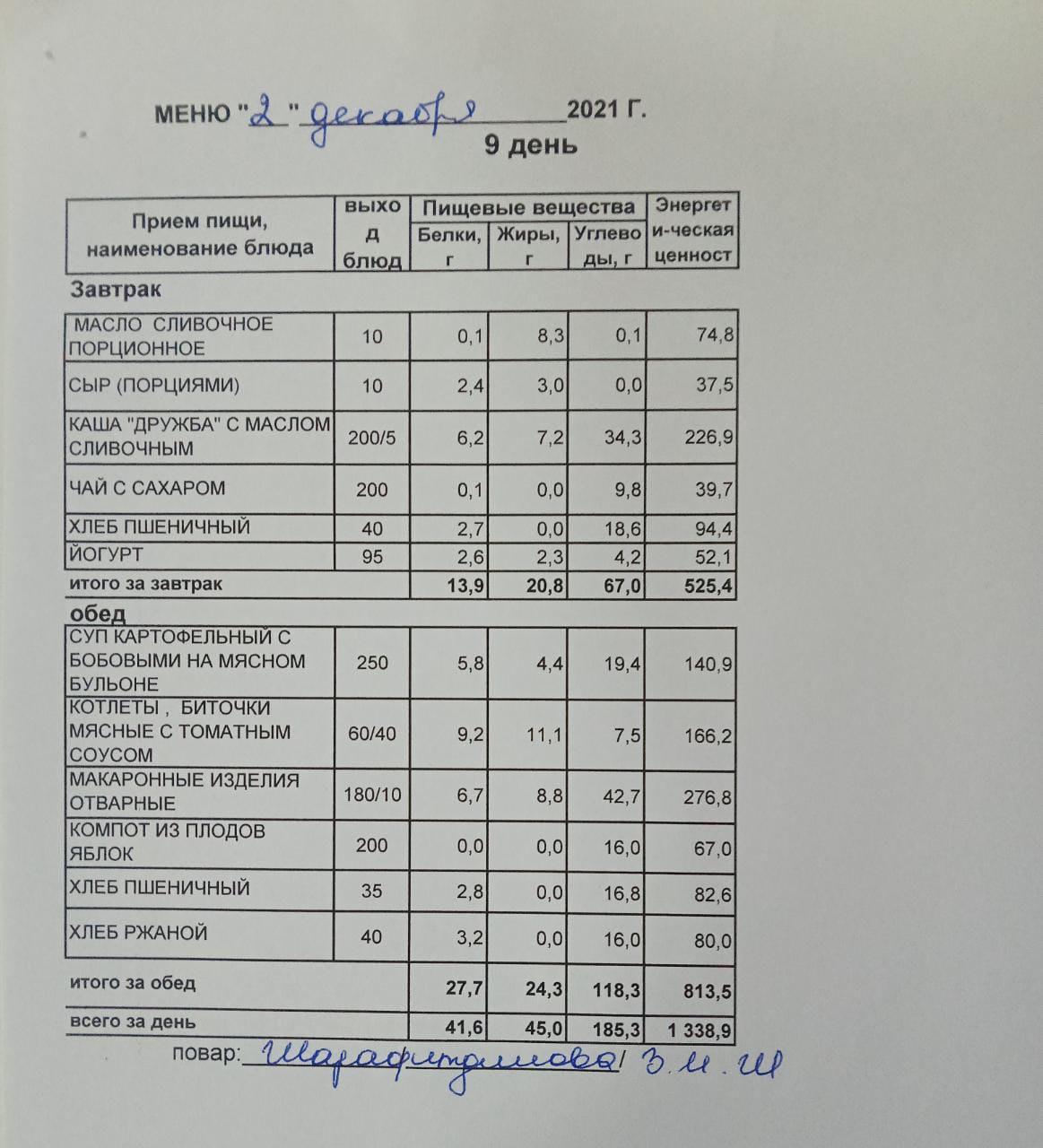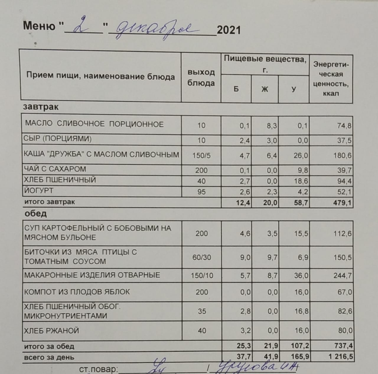 (Меню на 02.12.2021 г. обучающихся начального корпуса)