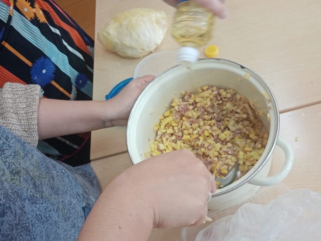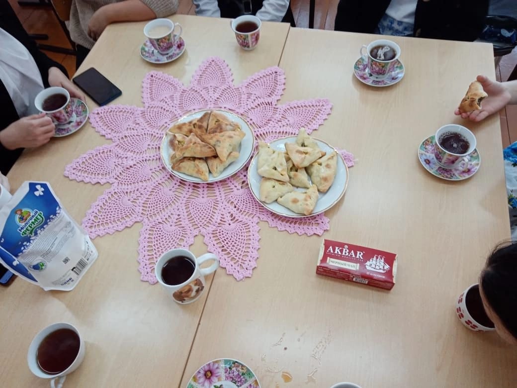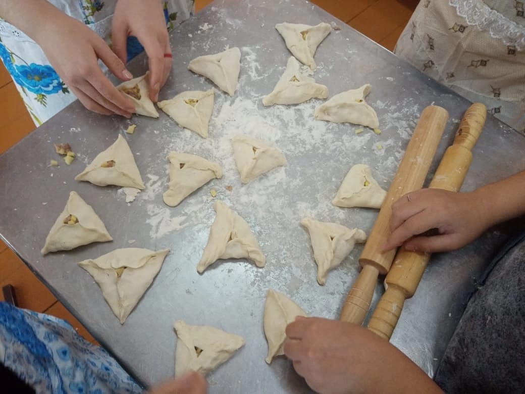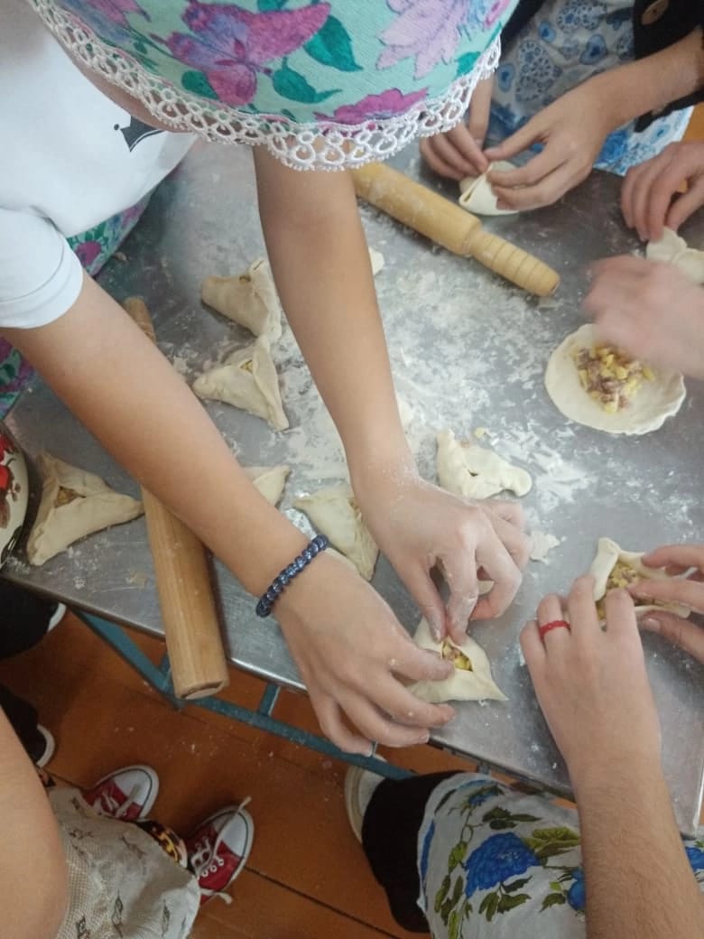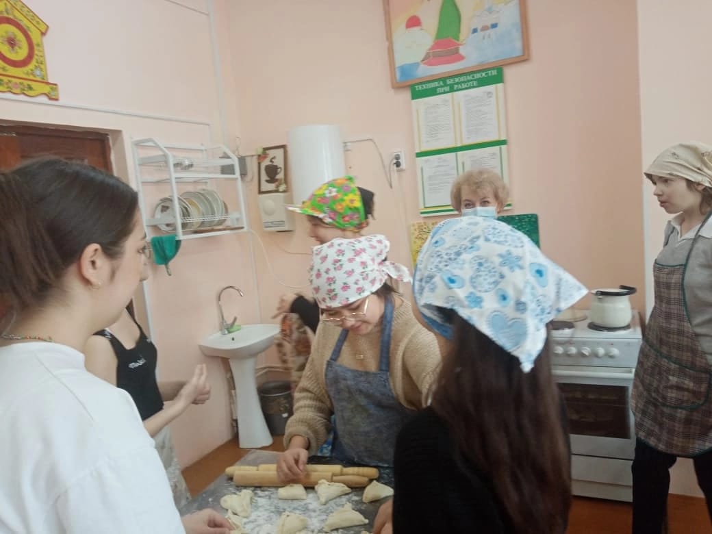 Учитель технологии Жердева Елена Юрьевна и девочки 7б класса приготовили национальное блюдо Вак беляш.