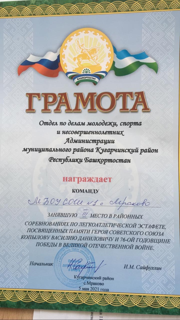 Муниципальное бюджетное общеобразовательное учреждение средняя общеобразовательная школа №1 села Мраково муниципального района Кугарчинский район Республики Башкортостан