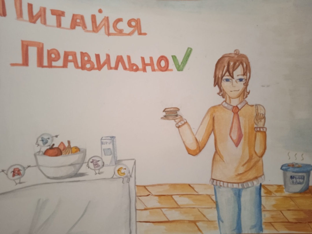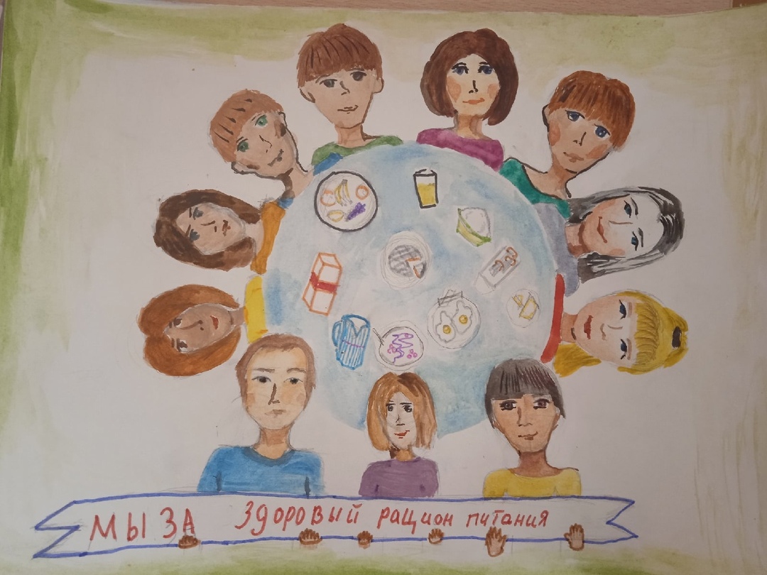 В детских рисунках был отображен правильный подход к здоровому питанию.