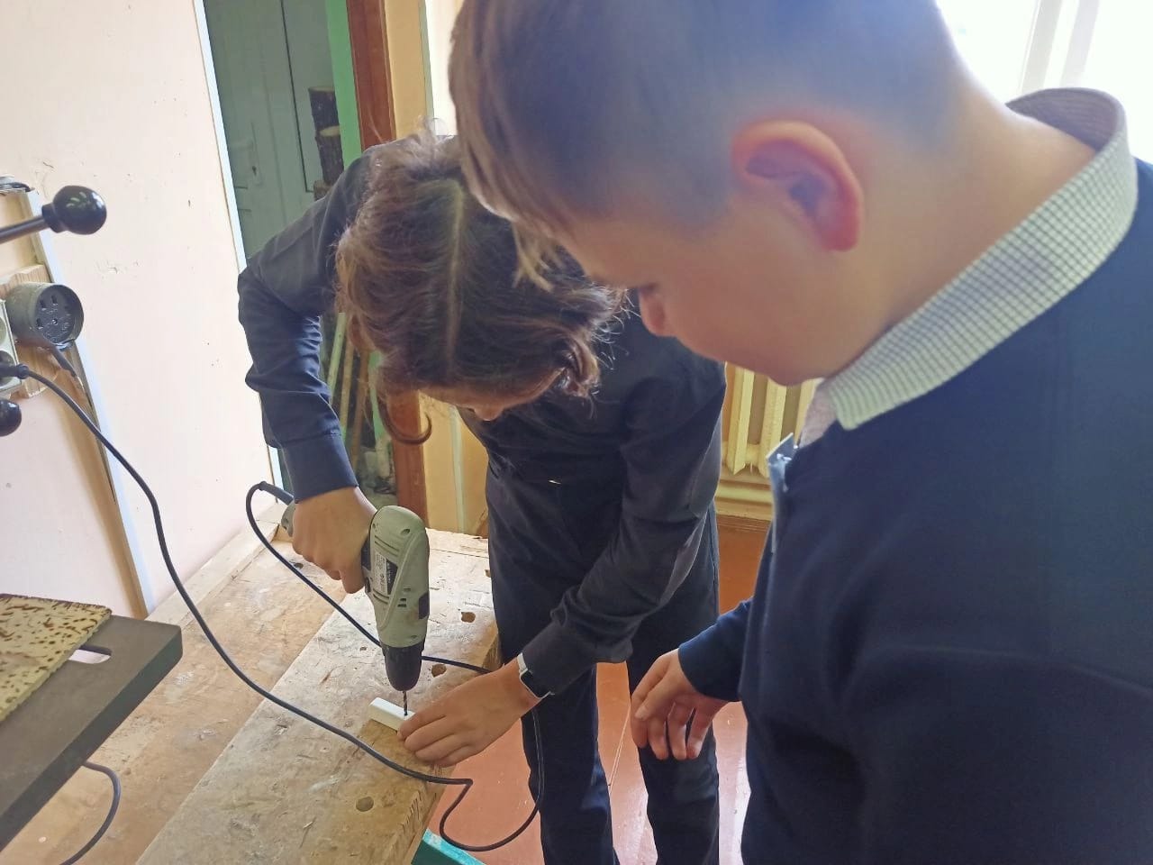 На фото занятия с учителем технологии Мазитовым Дамиром Амировичем.