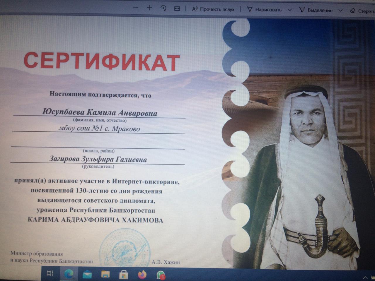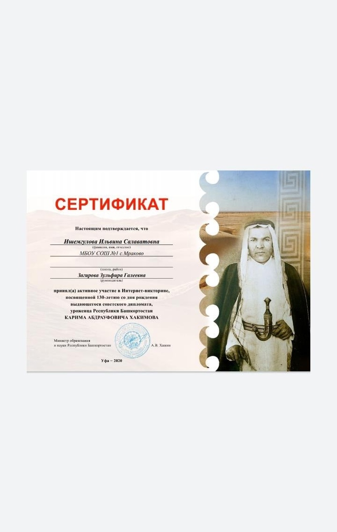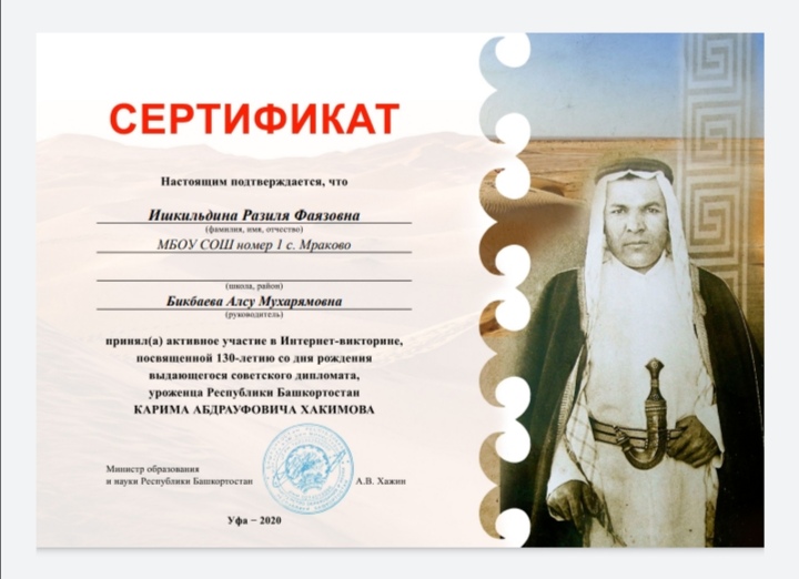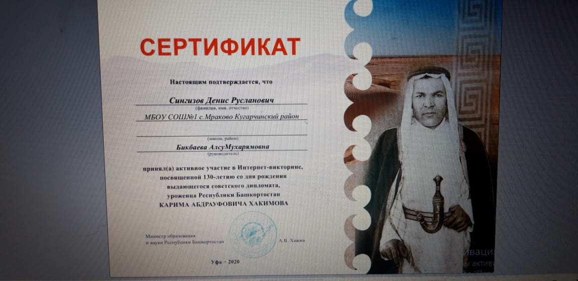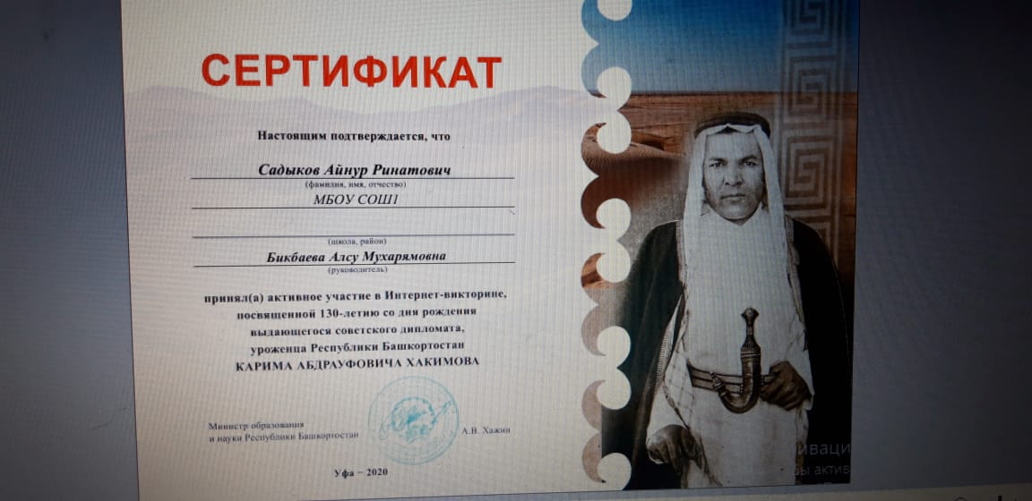 Интернет-викторина, посвященная 130-летию со дня рождения советского дипломата, уроженца Республики Башкортостан Карима Абдрауфовича Хакимова.