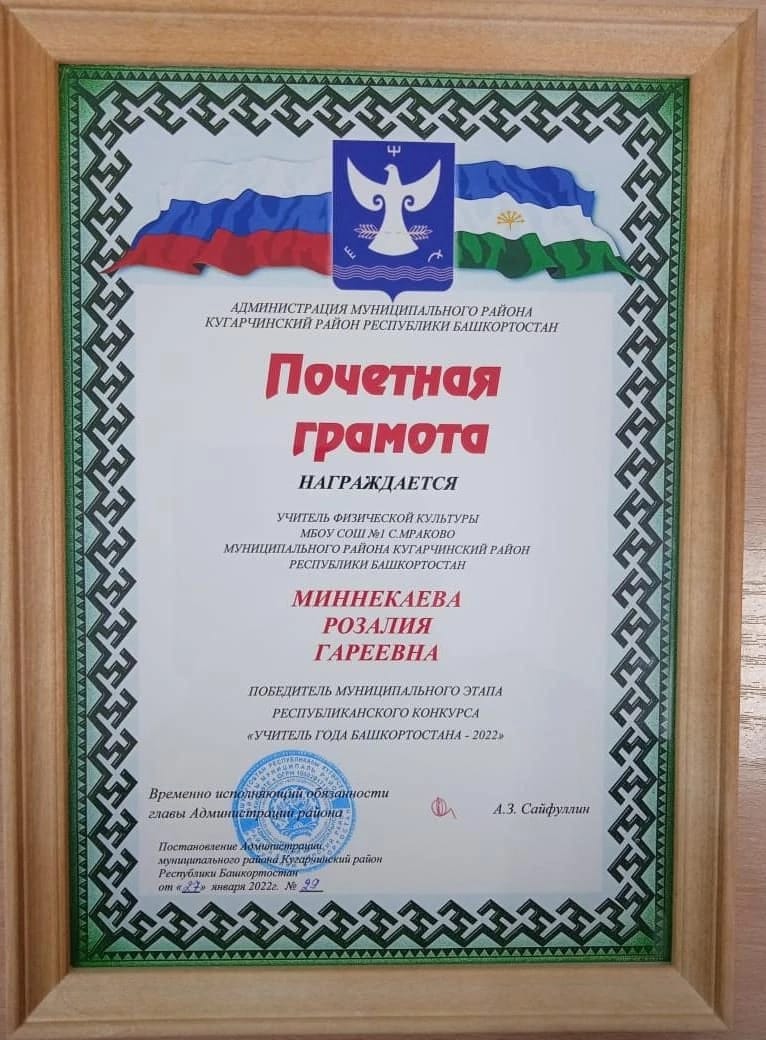 Миннекаева Розалия Гареевна, учитель физической культуры – победитель муниципального этапа республиканского конкурса «Учитель года Башкортостана-2022».